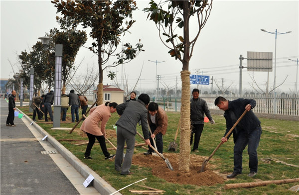 植樹(shù)現(xiàn)場(chǎng),一派熱火朝天的勞動(dòng)景象,大家熱情高漲、干勁十足,分工協(xié)作,默契配合,定行、鏟土、填坑、澆水,每道工序都進(jìn)行的十分細(xì)致、認(rèn)真。經(jīng)過(guò)一番辛勤勞動(dòng),共栽種廣玉蘭40余棵,一行行新栽下的玉蘭樹(shù)昂然挺立,在和煦的春風(fēng)中展現(xiàn)著蓬勃生機(jī)。