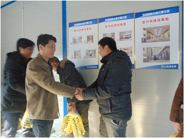此次活動經(jīng)費為公司房建工程部門日常募捐善款。慰問過程中,劉建華詳細詢問了困難工友的家庭生活、工作和身體狀況,鼓勵他們樹立信心,戰(zhàn)勝困難,并表示將繼續(xù)為他們提供了力所能及的幫助。通過此次活動的開展,使工友們切實感受到了園區(qū)的溫暖和關(guān)懷,為創(chuàng)建文明工地、構(gòu)建和諧園區(qū)起到了積極有效的作用。