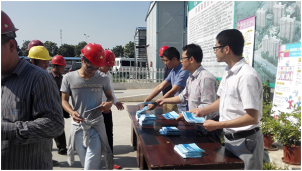 工作人員向參加交底活動(dòng)的工人發(fā)放安全生產(chǎn)宣傳手冊(cè),并向工人展示了精心制作的安全生產(chǎn)掛圖。夢(mèng)家園施工人員踴躍參加,活動(dòng)現(xiàn)場(chǎng)反應(yīng)熱烈,本次活動(dòng)起到良好的宣傳教育作用。