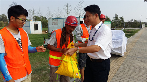 7月28日下午,開發(fā)公司副總裁劉建華帶領公司相關部門負責人來到公司代建項目工地,現(xiàn)場慰問了奮戰(zhàn)在高溫一線的企業(yè)員工和建筑工人,并親自給他們遞上了毛巾、肥皂、清涼油等防暑降溫物品。