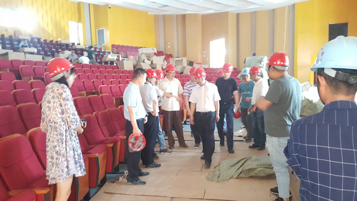 馮書記一行先后查看了項目1#樓報告廳、2#食堂、3#樓行政樓、4-5#樓教學(xué)樓,詳細查看了學(xué)校目前的整體進展和了解了下一步工作計劃。