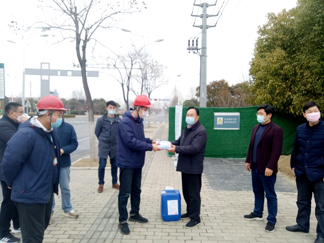 2月25日下午,園區(qū)黨工委委員、管委會副主任、規(guī)劃建設(shè)局局長邢全男帶隊慰問蘇宿園區(qū)架空線路二期入地工程一線工人。給工人送來口罩、消毒液和酒精等防疫用品。
