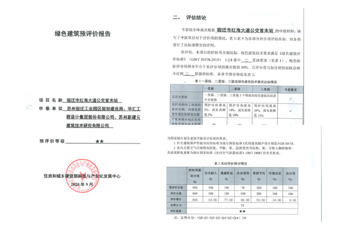 由開發(fā)公司代建的紅海大道公交首末站項目順利通過了住房和城鄉(xiāng)建設部科技與產(chǎn)業(yè)發(fā)展中心組織的第十四批綠色建筑預評價,并獲得預評價報告。該項目是按照最新《綠色建筑評價標準》(GB/T 50378-2019,以下簡稱“新國標”)進行評價的二星級綠色建筑。