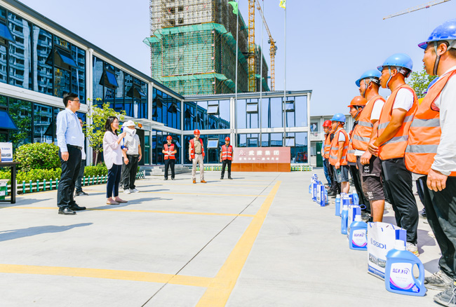 炎炎夏日送清涼,絲絲關(guān)懷暖人心。持續(xù)高溫悶熱天氣,給堅(jiān)守一線工人帶來了嚴(yán)峻“烤”驗(yàn),也時(shí)刻牽動(dòng)著公司領(lǐng)導(dǎo)的心。8月10日上午,城發(fā)公司董事長、總經(jīng)理李蘭霞,總經(jīng)理助理陸永軍、張?bào)K一行對(duì)公司在建項(xiàng)目一線施工人員和明日鄰里中心物業(yè)人員開展防暑降溫送清涼慰問活動(dòng),為奮戰(zhàn)在高溫一線的勞動(dòng)者們送上一份清涼、一份關(guān)懷。