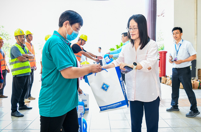 “大家在做好本職工作同時(shí),注意保重身體,防暑措施一定要做到位,確保安全生產(chǎn)。”在明日鄰里中心慰問現(xiàn)場(chǎng),李蘭霞與物業(yè)員工們親切交談,感謝他們?yōu)楣景l(fā)展和民生保障付出的辛勤努力,反復(fù)叮囑大家要提高夏日防暑意識(shí),做好自我防護(hù),確保以更好的狀態(tài)投入到工作中?,F(xiàn)場(chǎng)強(qiáng)調(diào)各部門要守牢安全底線,做好高溫時(shí)節(jié)各項(xiàng)工作,普及好防暑降溫和急救知識(shí),確保廣大一線職工的安全。