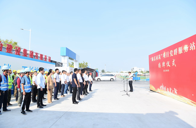 9月1日上午,城發(fā)公司“城芯同筑”項(xiàng)目黨群服務(wù)站揭牌儀式在園區(qū)智慧信息產(chǎn)業(yè)園項(xiàng)目部現(xiàn)場(chǎng)舉行,園區(qū)黨工委委員、管委會(huì)副主任、園區(qū)機(jī)關(guān)及直屬單位黨委書(shū)記崔廣全,園區(qū)黨工委委員、管委會(huì)副主任、園區(qū)國(guó)資國(guó)企黨委書(shū)記張漢華,城發(fā)公司管理層及全體黨員,五礦二十三冶華東分公司和江蘇華盛監(jiān)理公司黨員代表參加活動(dòng)。