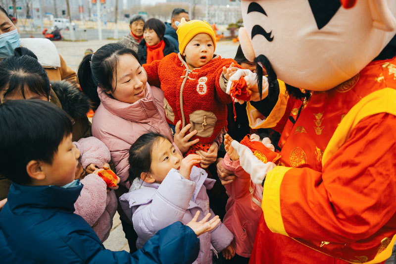 除了精彩絕倫的舞龍舞獅表演,活動現場還邀請了“財神爺”巡游。“財神爺”一路走街串巷,為街區(qū)里的商戶送去新春的美好祝福,祝愿他們新的一年生意紅火、財源廣進。同時,“財神爺”還向市民和游客發(fā)放福袋,大家紛紛上前領取,希望沾沾財氣,收獲滿滿的好運,現場一片歡樂祥和的景象。