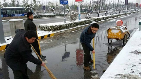園區(qū)城管部門和建發(fā)公司迅速動員部署,啟動掃雪應急預案,建發(fā)員工和環(huán)衛(wèi)工人不畏嚴寒,早晨六點鐘就走上街頭路口,揮舞著鐵鍬和笤帚,一點點地將積雪清掃干凈,經(jīng)過三小時的掃雪作業(yè),園區(qū)青海湖西路、玄武湖西路、陽明山大道等主干道已基本完成清雪工作,切實保障了市民出行。