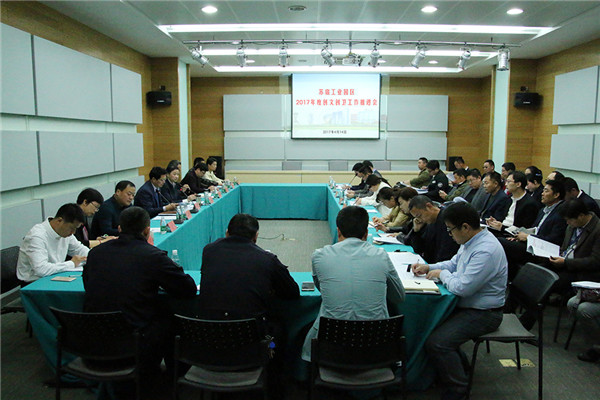 近日,園區(qū)召開2017年度創(chuàng)文創(chuàng)衛(wèi)工作推進會,工委領導戈亮、許紹杰出席會議并講話。園區(qū)五城同創(chuàng)指揮部、創(chuàng)文工作領導小組全體成員,園區(qū)各局辦綜合處負責同志,園區(qū)各建筑工地負責人,各住宅小區(qū)物業(yè)公司負責人參加會議。